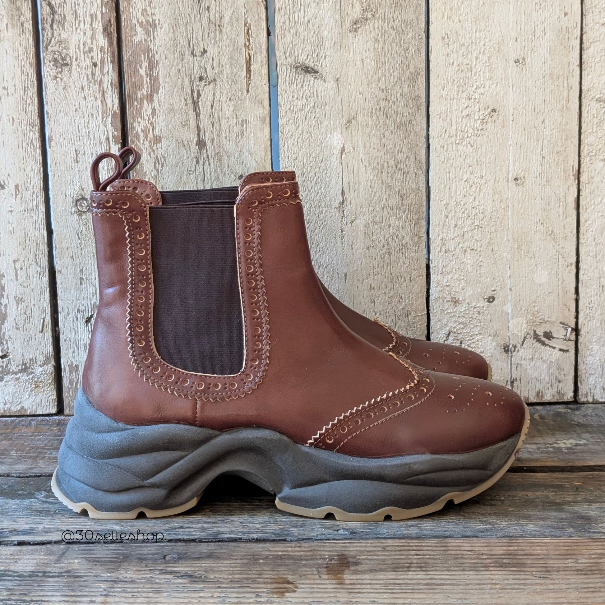 Sneakers Stivaletto con suola chunky realizzata artigianalmente in morbida nappa color tabacco.