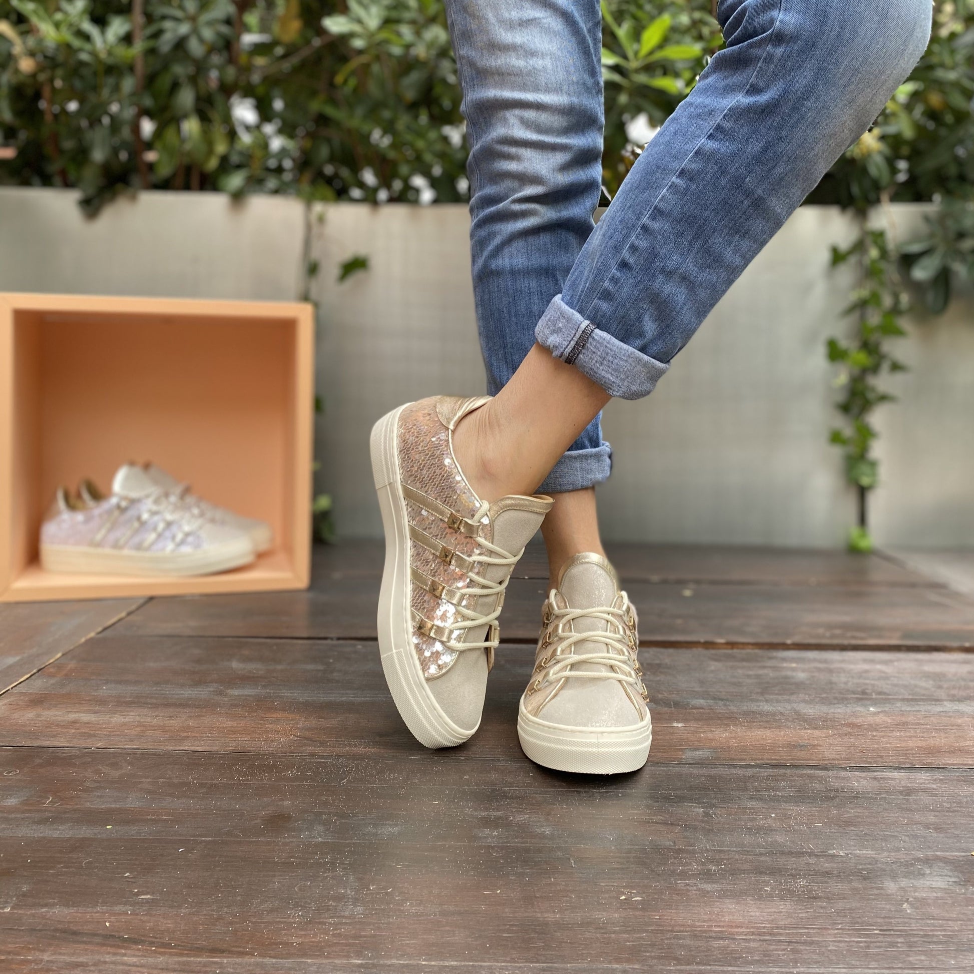 LE SNEAKERS CON PAILLETTES SONO LA SOLUZIONE GLAM PER UN OUTFIT BRILLANTE DA PORTARE IN TUTTA COMODITÀ! LUMINOSA E FEMMINILE SENZA RINUNCIARE AL COMFORT.